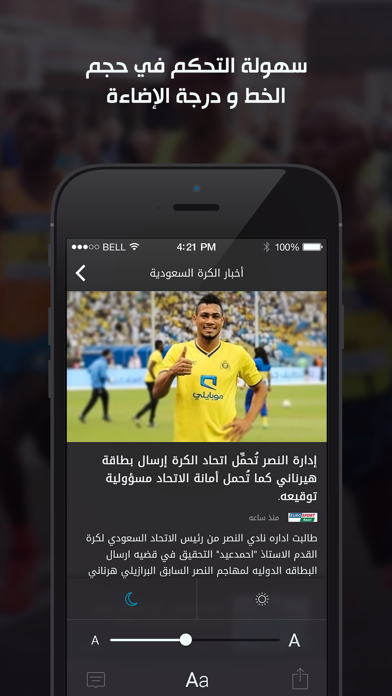 تطبيق "رياضة" يقدم لك مئات الأخبار الرياضية السعودية والعربية والأوروبية والعالمية يومياً وعلى مدار الساعة من كل المصادر والصحف العربية، بالإضافة إلى تغطية خاصة ومباشرة لأهم المباريات، إلى جانب أحدث وأفضل مقاطع الفيديو.. تغطية إخبارية بتقارير مفصلة عن أهم البطولات العربية و العالمية أهم المقاطع المصورة عن طريق قسم الفيديو لأهم البطولات دوري عبد اللطيف جميل، كأس العالم، الدوري الإنجليزي و دوري ابطال أوروبا وغيرها متابعة جميع مراحل البطولات بسهولة تامة. يمكنك عرض ترتيب فرق الدوريات، و مراحل المجموعات و التصفيات و معلومات التأهل و الهبوط، جدول مباريات الدوريات و البطولات تنبيهات بأهم الأخبار العربية والعالمية إمكانية مشاركة تحديثات المباريات و الأخبار على فيسبوك و تويتر مميزات التطبيق تصميم جديد بالكامل بشكل جذاب يضمن لك سهولة وسرعة تصفح الأخبار تغطية حية لحظة بلحظة للمباريات الهامة متابعة كافة الأخبار الرياضية من كافة المصادر أحدث أخبار سوق الانتقالات مشاهدة أهم الفيديوهات الرياضية “Reyada” new native application offers you hundreds of Saudi Arabia and Arab sports news, European and global daily and around the clock from all sources and Arab newspapers, as well as live coverage of the most important matches, along with the latest and best videos. Detailed news coverage reports for the most important Arab and international tournaments. Video section provides most important videos for various leagues (Abdul Latif Jameel, World Cup, Premier League and the Champions League and ets..). Follow all stages of the tournament quite easily. You can view the ranking tables, qualifying stages and knock out stages. Daily application push notifications following most important Arab and international news. Easily sharing news on your Facebook and Twitter Application features Completely new design in an attractive guarantee you the ease and speed of browsing News Live coverage (minute by minute) for important matches Follow all sports news from all sources The latest transfer market news Most important sports videos