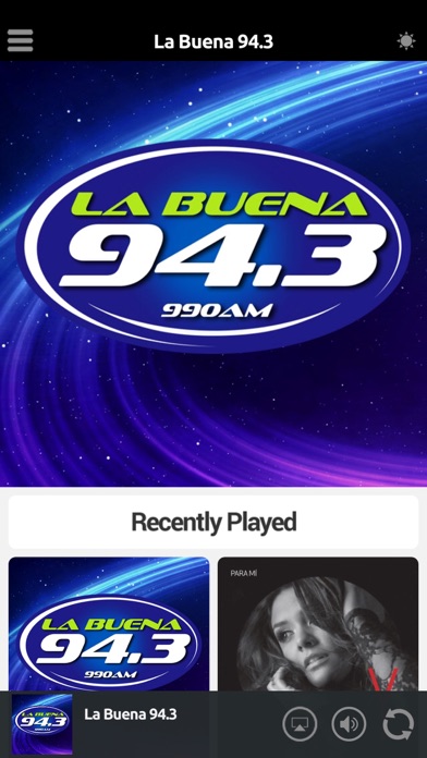 Never be without your favorite radio station. La Buena 94.3 is proud to present our OFFICIAL radio app. Listen to us at work, home or on the road. Install our app and get instant access to our unique content, features and more! - New design and interface - See current and recently played songs and up to date station and local news on a single screen - Wake up to your favorite station with our alarm clock. Record a personal reminder to play before waking to the station. - Fall asleep while listening to your favorite station - Access station's weekly show schedules so you don’t miss a thing - Real time weather for where you are - Share our app via Facebook, Twitter, and e-mail - Car Mode provides simple audio controls so you can listen while on the road