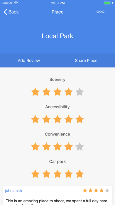 A simple way for avid photographers to share their favourite local locations for photography. Both amateurs and professionals can add places to a public map and rate their own and other's contributions. The principle of the app is very simple and yet extremely powerful with the ability to inspire others to visit new places and share their experiences with the community. Photographers from around the world can share their favourite spots making the app great for finding brilliant locations while on holiday of visiting other areas of the country. It provides a simple and convenient way to discover places and leave reviews. Helping you to rate places by the following important categories: - Scenery - Accessibility - Convenience - Car park This application was developed by a community as part of a research project at Newcastle University.