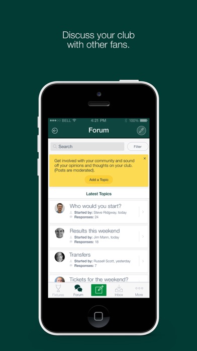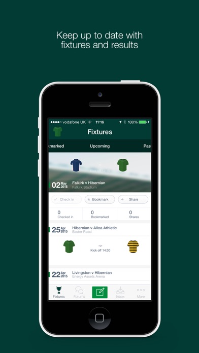 The Fan App for Hibernian FC is the best way to keep up to date with the club with the latest news, fixtures and results. Use the app to check-in to matches and events and share your photos and comments. Features: - Every photo/comment made at a game is shared in the live event stream, allowing you to see the live action from a different perspective - The application also features an unrivalled match day experience. Check in and post to the live match day stream and interact with fellow fans at the game - On the move? Follow the live stream and keep up to date with updates and photos from the game and be close to the action wherever you are! - Keep in touch with all the latest news from the club - Get a room! Users can now message users they follow privately. Discuss the latest with your mates! - Share with everyone. Your match day moments can be easily shared from the app to Facebook and Twitter - Stay up to date with all the latest news from the club and follow the fixture list with notifications and messaging, plus get vouchers from vendors and partners - Easily invite friends and family to events and match days - Collaborate by giving and receiving likes, as well as in-play commenting at each game