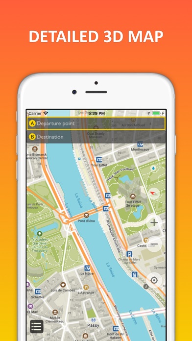 100% OFFLINE: beautiful 3D city map, public transport route planner, address and places finder! Big cities can be confusing and intimidating for those visiting or living in it. Paris is the biggest of the big cities and despite living here, it is highly likely you still do not know your way around all of Paris. Worry no more! Paris City Offline Map is here to take care of your navigation problems. It will help you to find your way from one location to another, quickly, easily, and accurately. It provides you with an offline map of the city of Paris that you can download and store on your device and use as you may wish without bothering to look for a network or worrying about connectivity. Use Paris City Offline Map to find your way in the City of Love. Get rid of the outdated navigation apps that take ages to load and require an Internet connection every time you need help to navigate. Download the Paris City Offline Map with Public Transport Planner once and use it forever. Its regular updates ensure that you have the latest data about Paris available on your device at all times. Experience Paris in 3D, watch the city come alive on your screen like never before. Optimize your navigation routes as Paris city offline map allows you to explore the city’s various transport options and provides you with the best route, from one point to the other. You have all you need in the palm of your hand. Wish to find a restaurant or a museum or that little café you have recently heard about? Just turn on Paris City Offline Map’s excellent city guide and it will take you there without any fuss. Its huge database of businesses, attractions, parks, monuments, and other interesting destinations, allows hassle free guiding service to you. Paris City Offline Map guide updates will keep you informed about the hottest places in Paris so you never miss out on the best places to eat, drink or relax. Key Features: • A comprehensive transport route planner for all modes of public transport within Paris City. • Offline map that is low on storage and high on data. • 3D maps for a realistic experience. • Use the Paris City Offline Map Route planner to plan your journey by bus, subway, ferries or railway to get from one place to another within Paris, quickly and cheaply. • Detailed functions of its efficient route planner will inform you which transport to take, from where to take it, where to get off and at what time. • Know your journey time as the route planner displays the duration of the journey and the time spent on each mode of transport you use enroute. • A city guide that contains information about all the attractions, eateries, parks, monuments, theaters, and other places of interest for quick reference. • Allows you to search for a location by name or address. • Provides up to date information about Paris City. Download "Paris City Offline Map with Public Transport Route Planner" and never get lost in the city of Paris again!