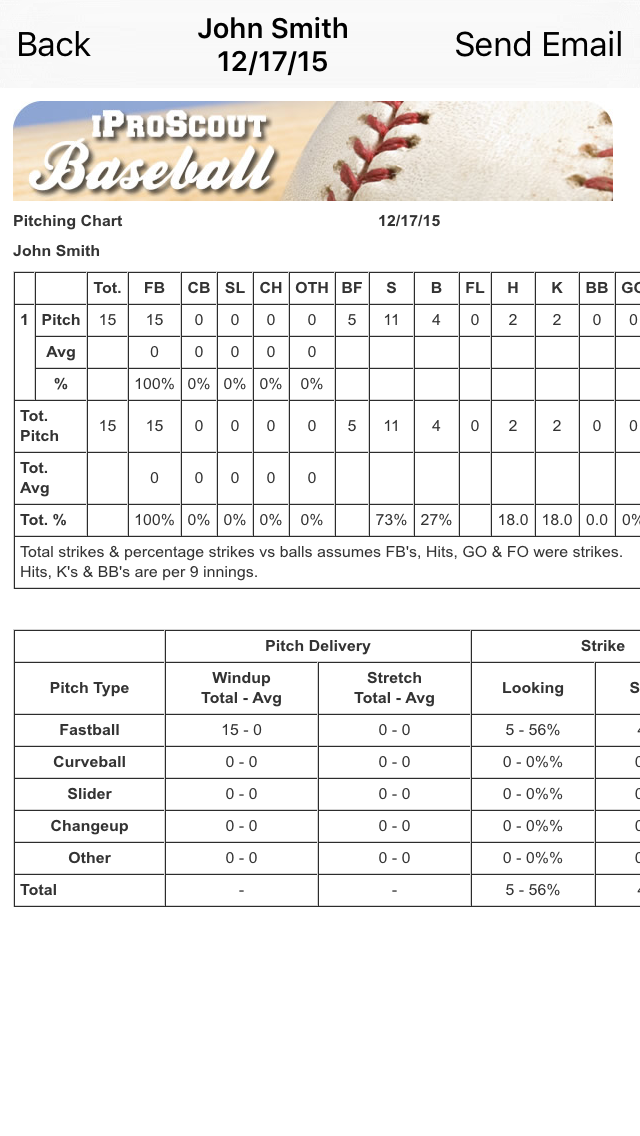 The Pitch Count & Chart App is easy to use and truly mobile in your hand, on your iPhone, and at the field! Coaches, Parents, and Players use the app at the ballpark, in the dugout, and in the stands! The Pitching chart can be emailed directly from your phone in an instant to review, to send to a coach, and to send to a college recruiter to help get that scholarship! You push the buttons and the app does the rest of the work compiling every pitch into a detailed report you can view at any time during the game or after. Pitch Counting - Pitch Charting App - VELO Analysis & Reports app! 7U - 12U - Pitch Counting app - Use as a pitch counter. 14U - 15U - Pitch Counting / Pitch-type Charting app - Track not only pitch count but record the type of pitches too! 17U - 18U - Pitch Counting/Pitch Charting & VELO Analysis app - Record every pitch, pitch type and when the player is at this age level even include the velocity for each pitch! Collegiate – Professional Baseball - Pitch Counting - Pitch Charting - VELO Analysis & Reports app - Coaches - Count - Chart - Capture VELO - Analysis & Reports like the Pro's - Tools for scouting HS and College players, Pro Player Development, Advance Scouting