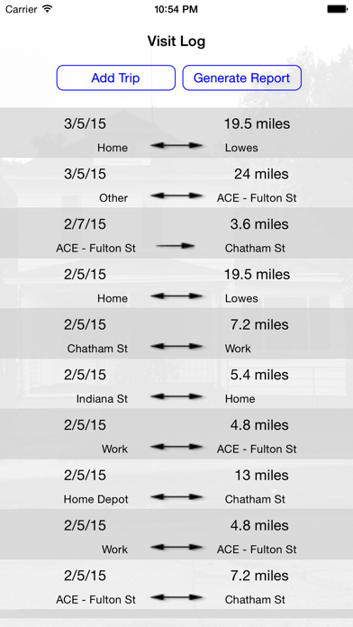 이는 조세, 회계 목적을 위해 거리와 방문 세부 사항을 추적하기위한 비즈니스 도구입니다. 쉽게 이동 거리와 이유에 대한 메모를 할 때, 당신은 어디에 있었는지에 대한 자세한 방문 추적 로그를 유지합니다. 그것은 단지 몇 가지 간단한 예상 소요 당신의 위치를 설정 한 후 당신은 당신의 로그에 여행을 추가 할 수 있습니다. 당신이 그것을 다시 할 필요가 없습니다 처음 입력 한 후 수 있도록 응용 프로그램은 또한 두 위치 사이의 거리를 기억할 것입니다. 이제 쉽고 빠르게 생성 된 보고서를 통해 비즈니스 여행을 추적 할 수있는 기능이 제공됩니다. 주요 특징 : - 쉽게 클릭 추적에 대한 위치 정보를 저장합니다. - 한 번만를 검색해야하므로 두 위치 사이의 거리를 추적합니다. - 주어진 기간 동안의 보고서를 생성 할 수있는 능력. - 이메일 또는 뷰 쉼표로 구분 보고서와 세금 및 비즈니스 추적을 위해 자신에게 보냅니다.